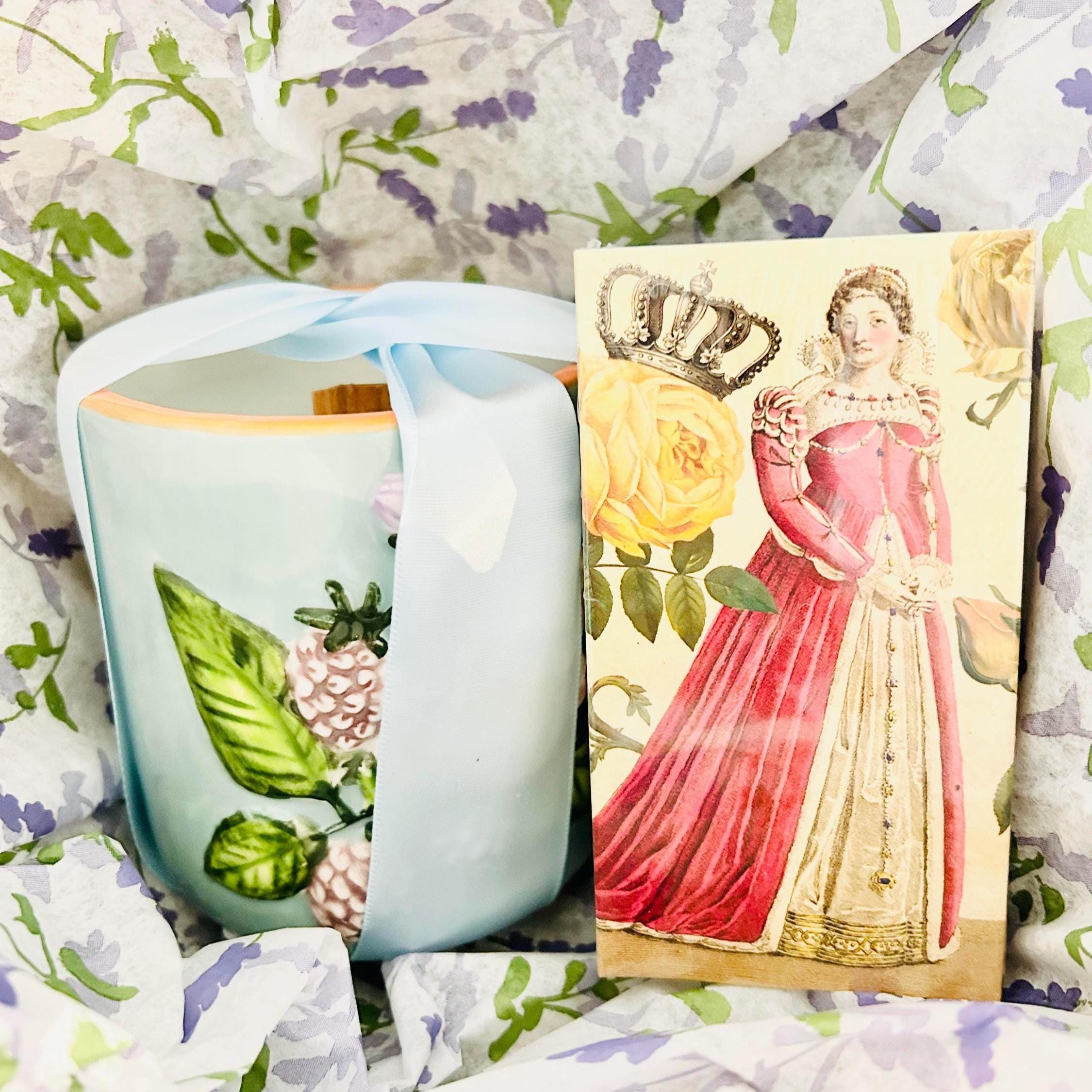 Will be packaged nicely with Floral tissue paper and ribbon on candle etc.